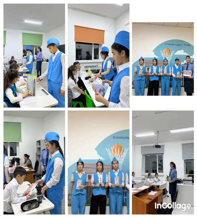 20 қараша күні Абай атындағы жалпы орта білім беру мектебінде 5-8 сыныптар арасында «Заң және тәртіп» тұжырымдамасы аясында Жас полиция көмекшілері мен мектеп участкелік полициясы Куан Рауангүл ҚР ІІМ нұсқауына сәйкес “Қауіпсіз жол” жедел профилактикалық іс-шарасы аясында мектеп участкелік полиция қызметкері Қуан Рауангүл бастауыш сынып оқушыларына жол қауіпсіздігі туралы түсіндірме жұмыстарын өткізді.