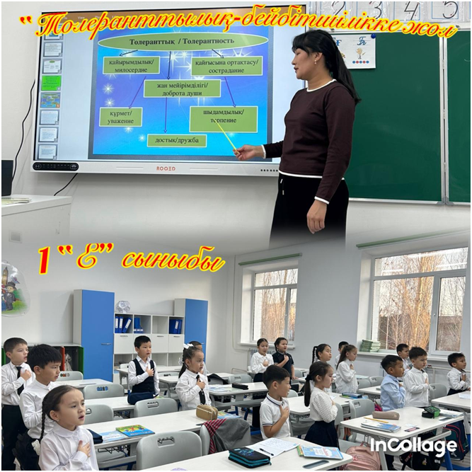 1 “Е”сыныбында «Толеранттылық – бейбітшілікке жол» атты сынып сағаты өткізілді.