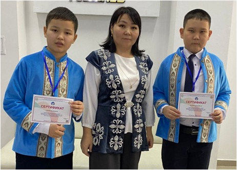 ІІІ орын. Робототехника бағыты. 6 «А» сынып оқушысы Ерліков Бекнұр мен 5 «А» сынып оқушысы Естентаев Қайсар (жетекшісі Мурат С).