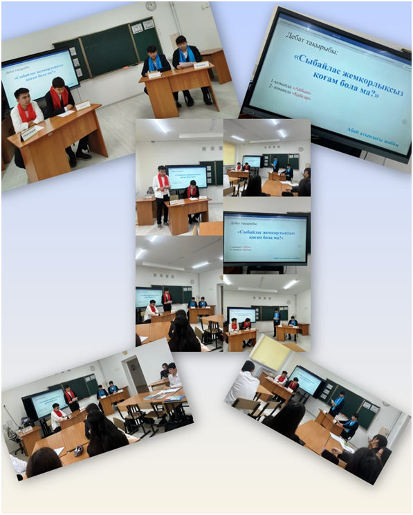 8 желтоқсан Абай атындағы ЖОББ мектебінде «Сыбайлас жемқорлықсыз қоғам бола ма?» тақырыбында мектепішілік дебат сайысы өтті. Пікірсайысқа Қайсар және Айбын командалары қатысып, өз көзқарастарын дәлелді түрде қорғап шықты.