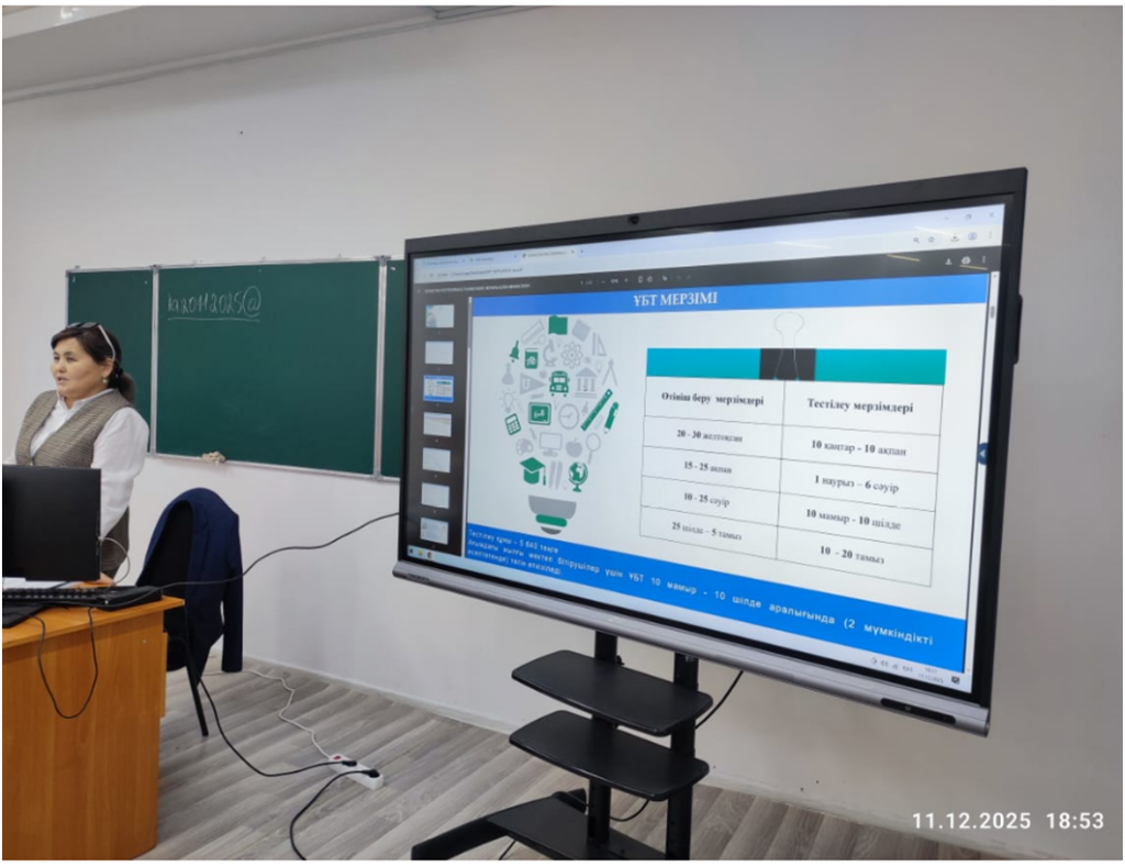 11-СЫНЫП ЖЕТЕКШІЛЕРІ ЖӘНЕ МЕКТЕП БАСШЫСЫНЫҢ ОҚУ ІСІ ЖӨНІНДЕГІ ОРЫНБАСАРЫ Е.С. ТЕМИРТАЕВАНЫҢ ҚАТЫСУЫМЕН 2025 ЖЫЛҒЫ ЖЕЛТОҚСАН АЙНЫҢ 11 КҮНІ 11 СЫНЫПТАРДЫҢ АТА-АНАЛАРЫНА АРНАЛҒАН «ҰБТ-2026» ҚАҢТАР АЙЫНЫҢ ТЕСТІЛЕУІНЕ АРНАЛҒАН АТА-АНАЛАР ЖИНАЛЫСЫ ӨТТІ. Ата-аналарға арналған ақпарат, Әдістемелік жұмыс