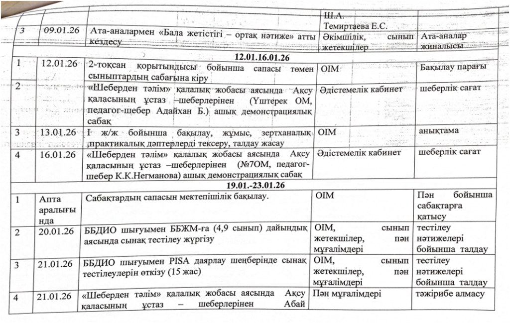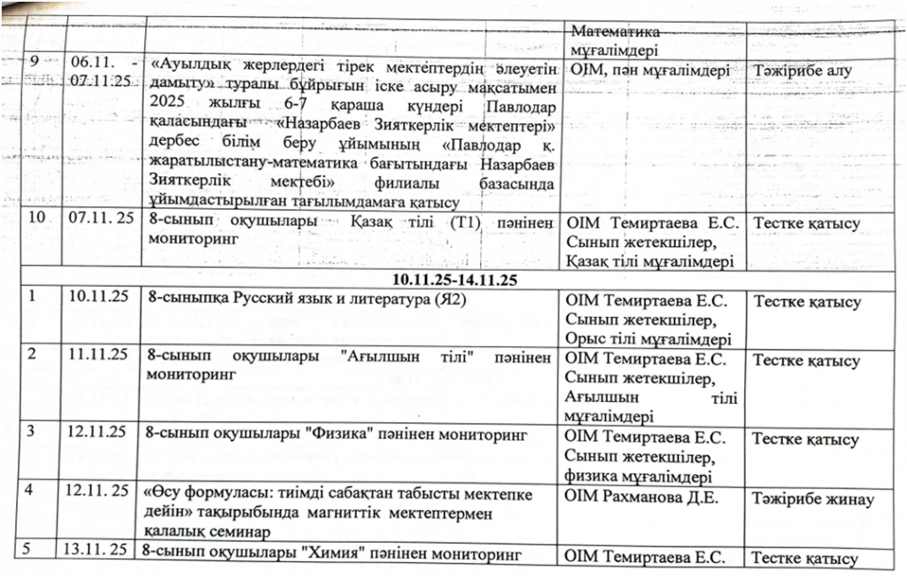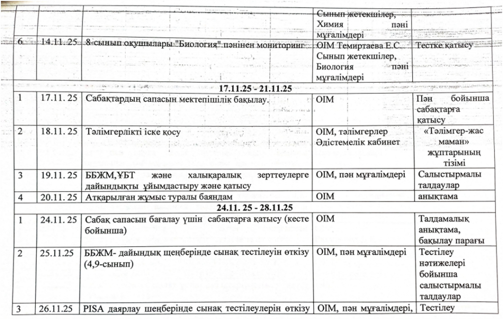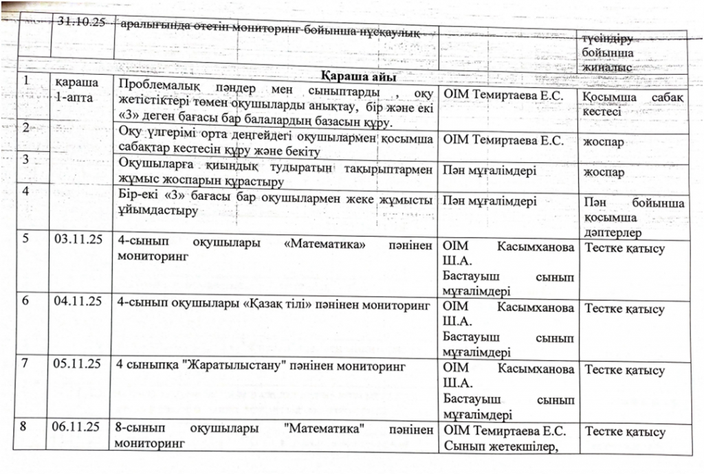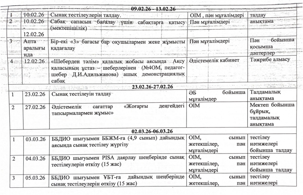 Білім сапасын арттыру бойынша білім басқармасының, білім бөлімінің жоспары негізінде мектепішілік жоспар құрастырылды. Жоспарға сәйкес іс-шаралар өткзілетін болады. Әдістемелік жұмыс