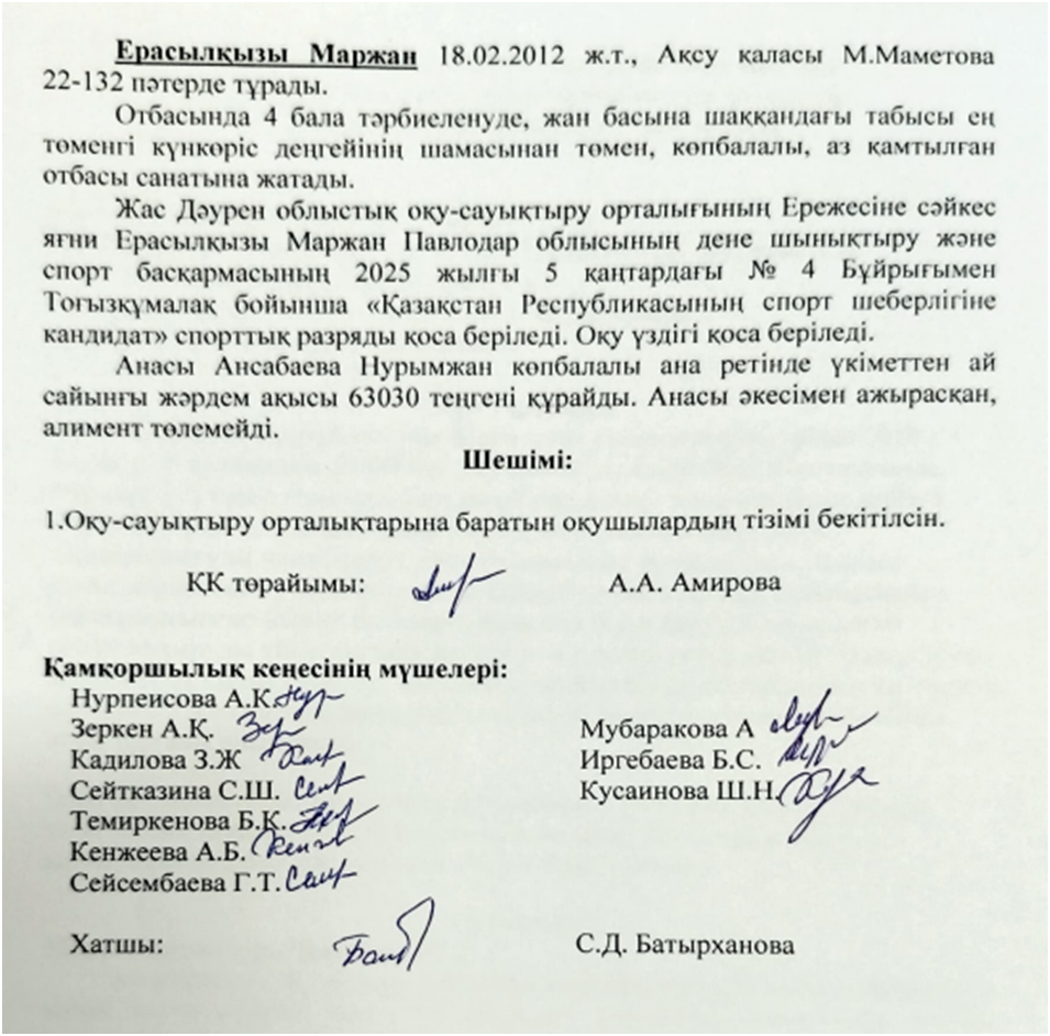 Қамқоршылық кеңесі №7 хаттамасы 18.09.2025ж.