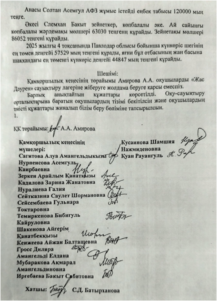 Қамқоршылық кеңесі №8 хаттамасы 30.09.2025ж.