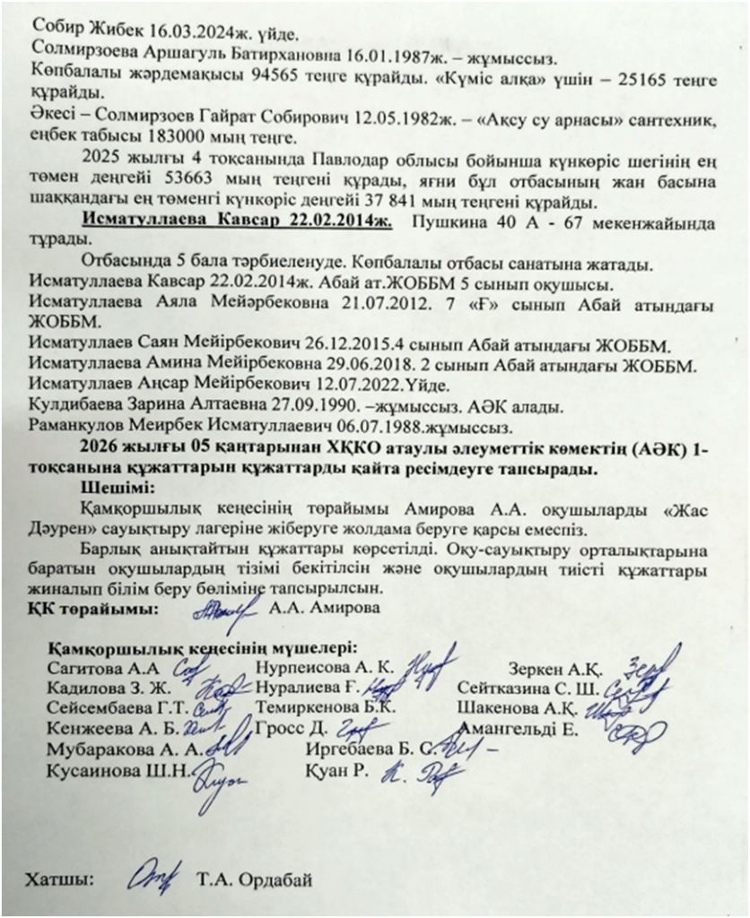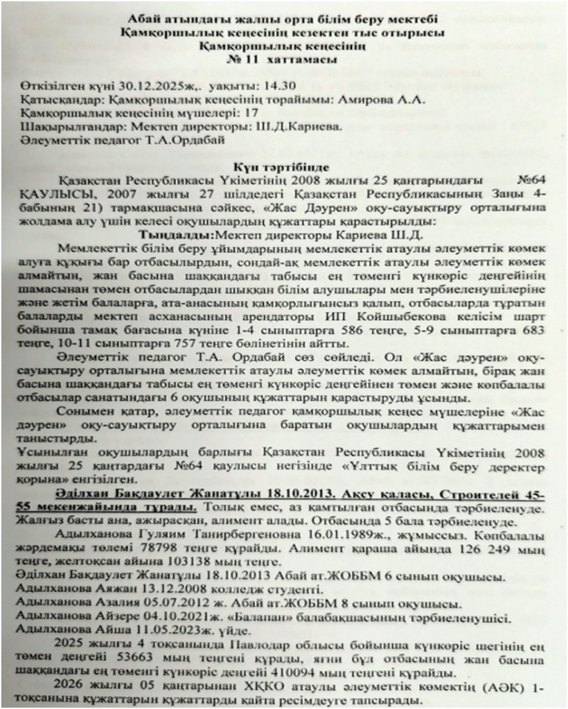 Қамқоршылық кеңесінің №11 хаттамасы 30.12.2025ж.