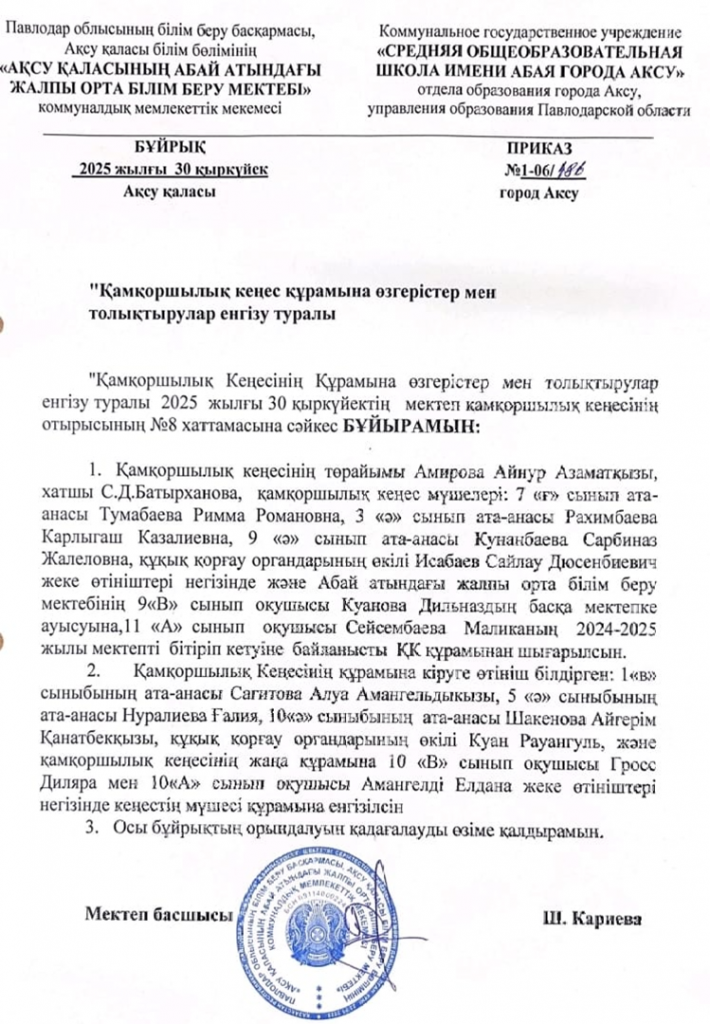 ҚАМҚОРШЫЛЫҚ КЕҢЕС ҚҰРАМЫНА ӨЗГЕРІСТЕР МЕН ТОЛЫҚТЫРУЛАР ЕНГІЗУ ТУРАЛЫ Қамқоршылық кеңес, Қамқоршылық кеңес