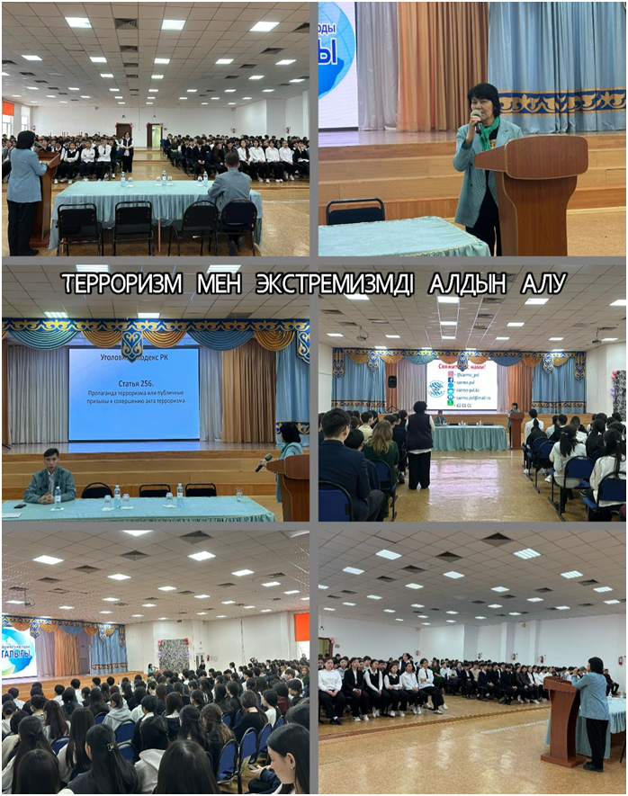 Кездесу барысында ақпараттық-түсіндірме орталығының инспекторы Асанбаева З.О діни экстремизм мен терроризм ұғымдарына кеңінен тоқталып, олардың пайда болу себептері мен қауіпті салдарын түсіндірді.