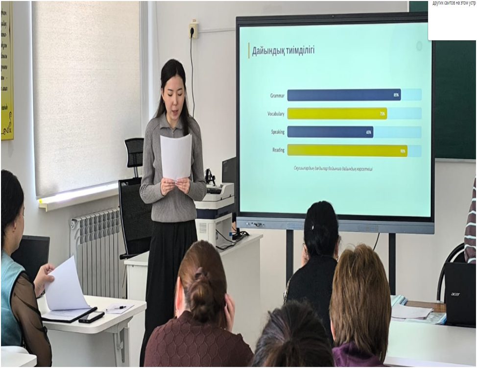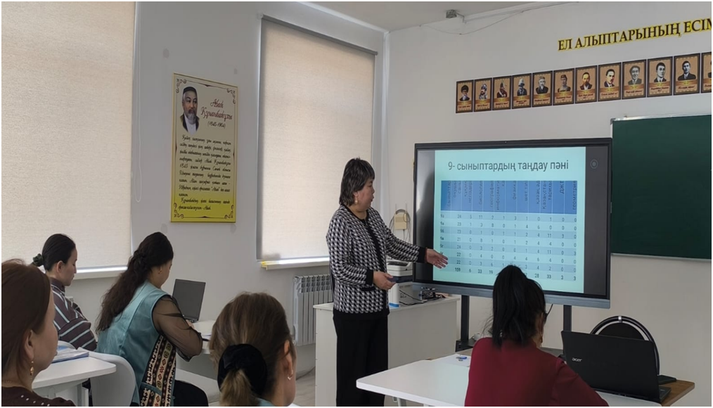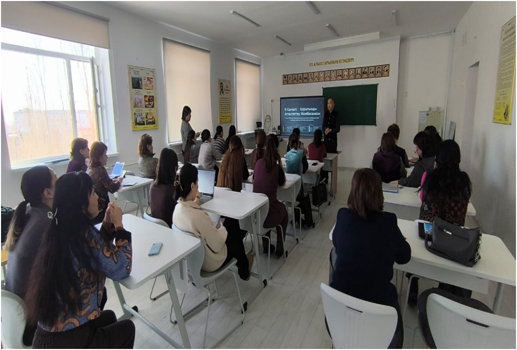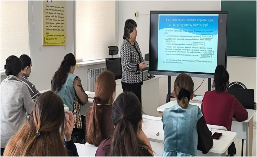 2026 жылғы 20 наурыз күні 9,11-сынып пән мұғалімдеріне арналған «Қорытынды аттестаттауға дайындық: тәжірибе, талдау, нәтижелер» тақырыбында әдістемелік отырыс ұйымдастырылды. Іс-шараның мақсаты – білім алушыларды қорытынды аттестаттауға сапалы дайындау бағытында тәжірибе алмасу, оқытудағы тиімді әдіс-тәсілдерді талдау және алдағы жұмыстардың нәтижелілігін арттыру.