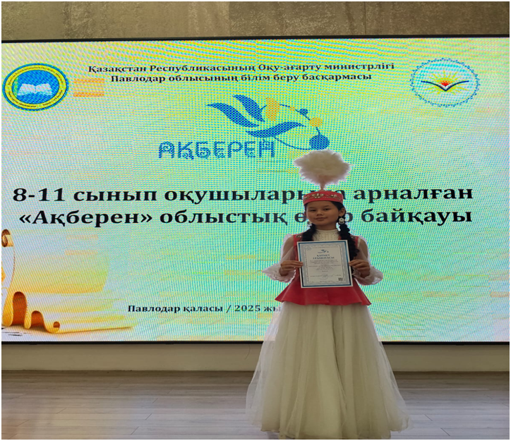 2025 жылдың 15 қазанда шығармашыл оқушылар арасында «Ақберен» республикалық өнер байқауының облыстық кезеңі өтті. Мектебіміздің екі оқушысы, нақтырақ айтсақ 9-сынып оқушысы Кисатова Жанель (пән мұғалімі: Рахметова А.А.) «Ұлттық аспапта ойнау» бағыты бойынша өнерін көрсетсе, 10-сынып оқушысы